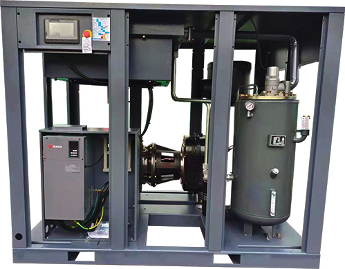 Le compresseur d'air à vis de compression à deux étages réduit le taux de compression par niveau, réduit les fuites internes et augmente l'efficacité volumétrique, réduit la charge de roulement, améliore la durée de vie de l'hôte. Compression à deux étages au lieu d'une compression à un étage, près d'une augmentation de 15 % de déplacement, peut réaliser un effet d'économie d'énergie de 15% plus.