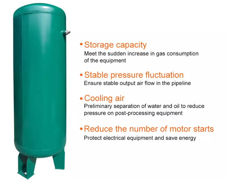Le réservoir de stockage d'air peut éviter d'avoir à ouvrir le système de compresseur avec seulement quelques secondes d'air.Cela réduit le coût d'utilisation d'un compresseur.L'utilisation électrique et les coûts de maintenance ont également été réduits.Ensuite, à mesure que la quantité d'utilisation augmente, l'air peut être stocké.
